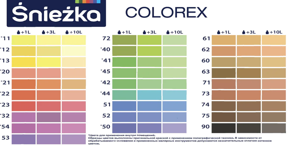 Красители с номерами 11, 12, 13, 20, 21, 22, 23, 32, 40, 41, 42, 44, 45, 50, 54 применяются только внутри помещений!