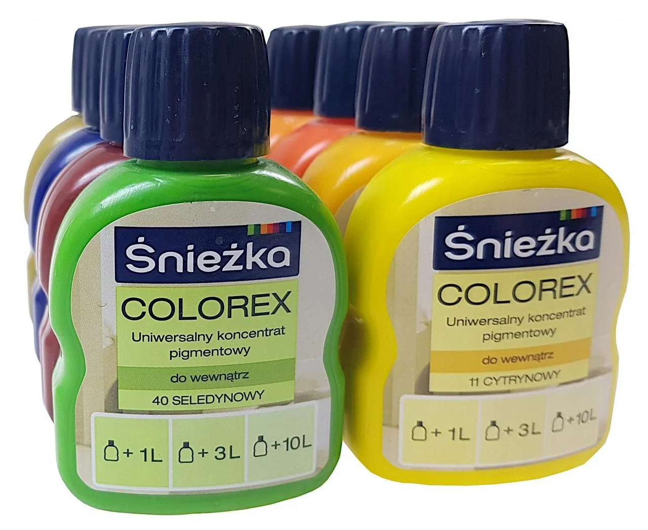 КОЛОРЕКС - водная дисперсия пигментов с добавлением вспомогательных средств. Краситель предназначен для колеровки в выбранный цвет готовых водорастворимых красок и красок на основе растворителей: эмульсионных, масляно-фталевых, клеевых, нитроцеллюлозных, хлоркаучуковых. Некоторые из имеющихся цветов можно применять для наружных работ. Объем колера должен быть не более 10% от объема краски.