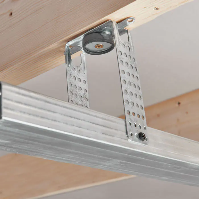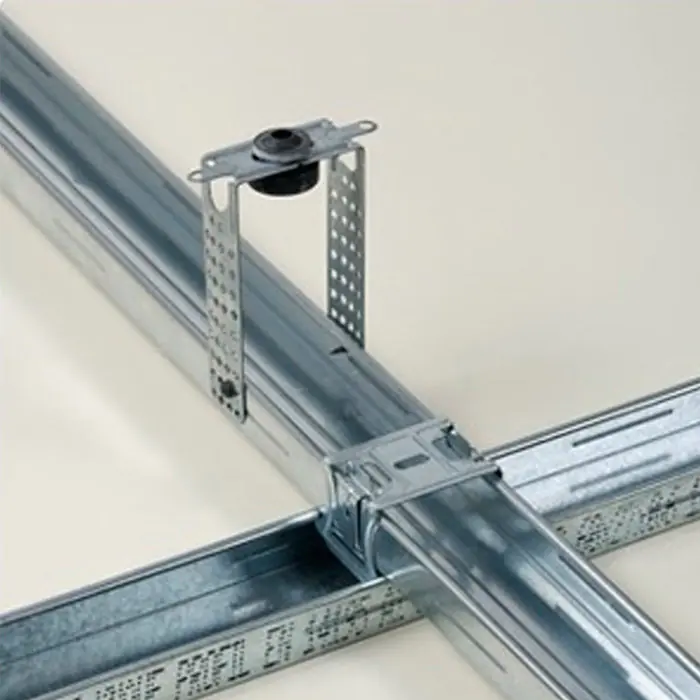 Подвес прямой антивибрационный KNAUF используется в звукоизоляционных системах для амортизации и устранения вибраций.