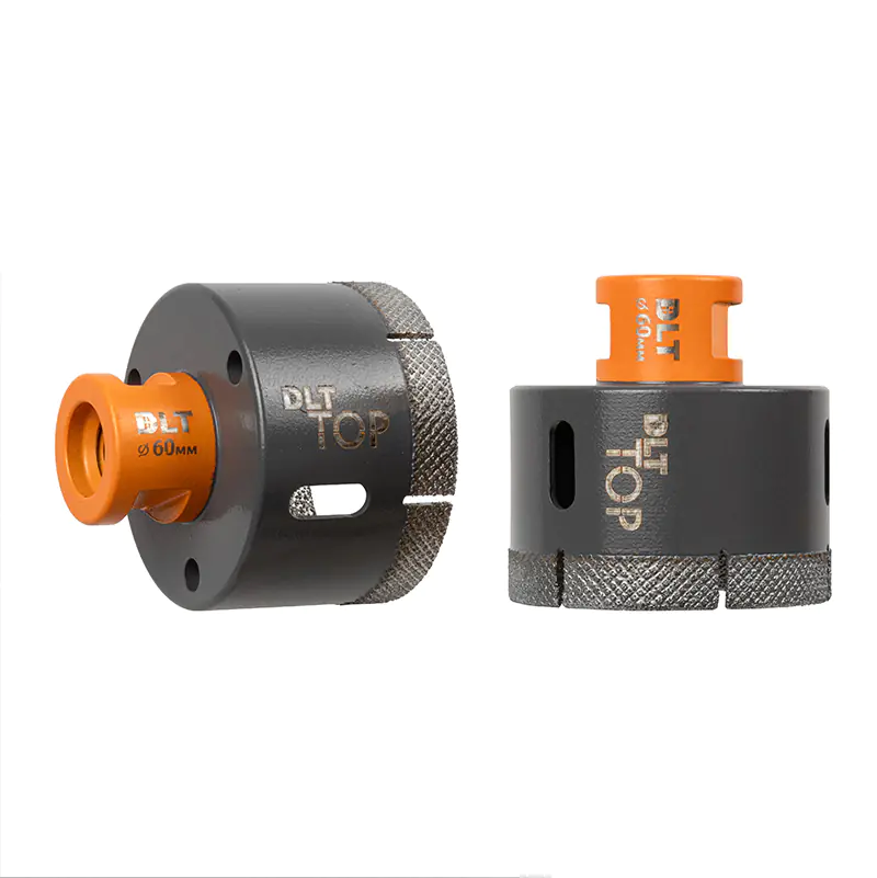 Алмазная коронка DLT TOP 60 мм выполнена по технологии вакуумно-жидкостного спекания, при котором алмазы расположены в строго распределенном порядке за счет чего коронки позволяют производить быстрое и чистое сверление с минимальными сколами. При этом сохраняется высокая скорость сверления и ресурс, даже без использования водяного охлаждения.