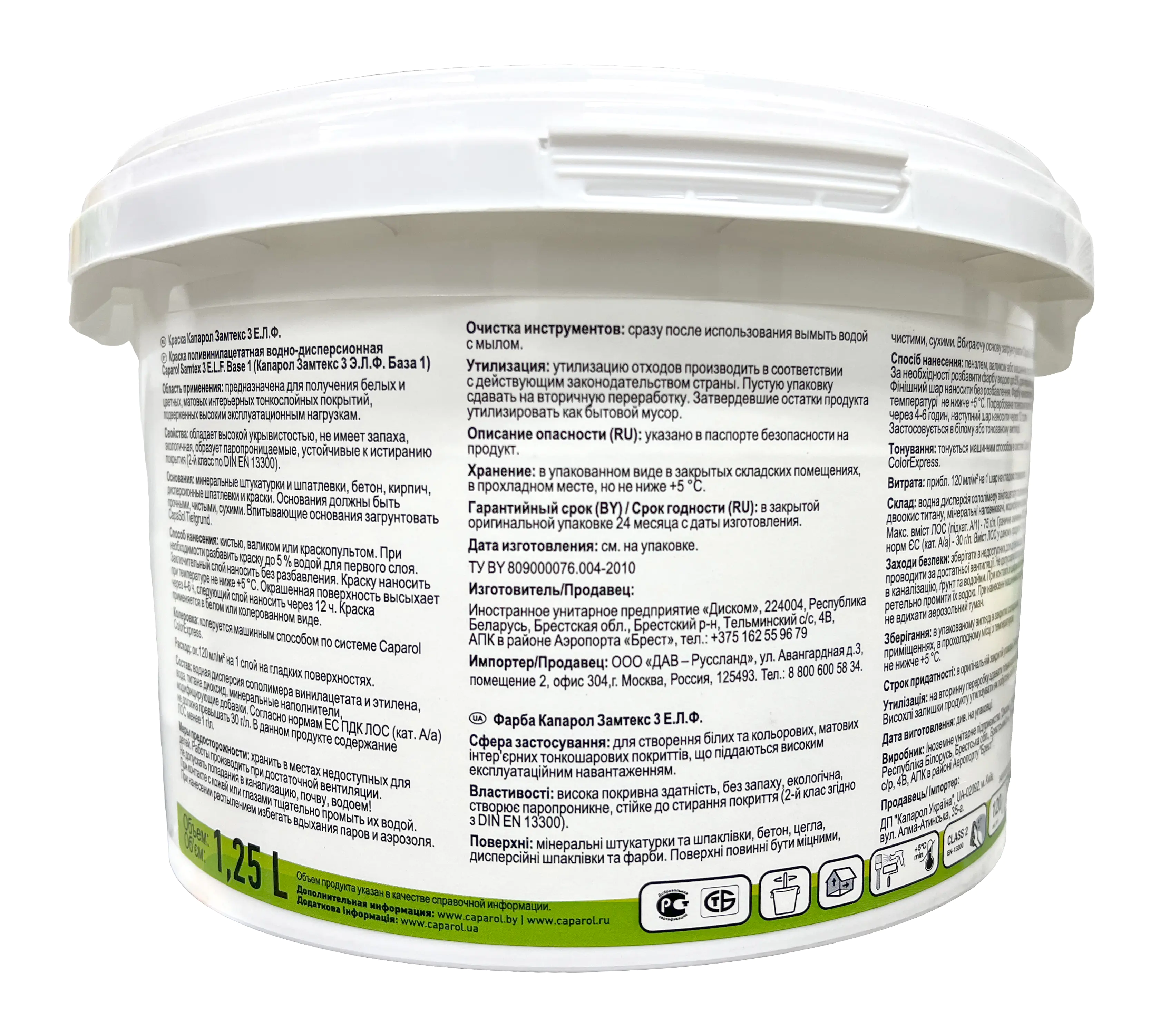 Samtex 3 E.L.F. База 1 допускает самостоятельное колерование путем добавления колеровочных красок CaparolColor или AVA. При самостоятельном колеровании во избежание несовпадения цветового тона необходимо смешать всю краску. При заказе красок одного цветового тона в количестве 100 л и более, а также по запросу, краски колеруются на заводе.