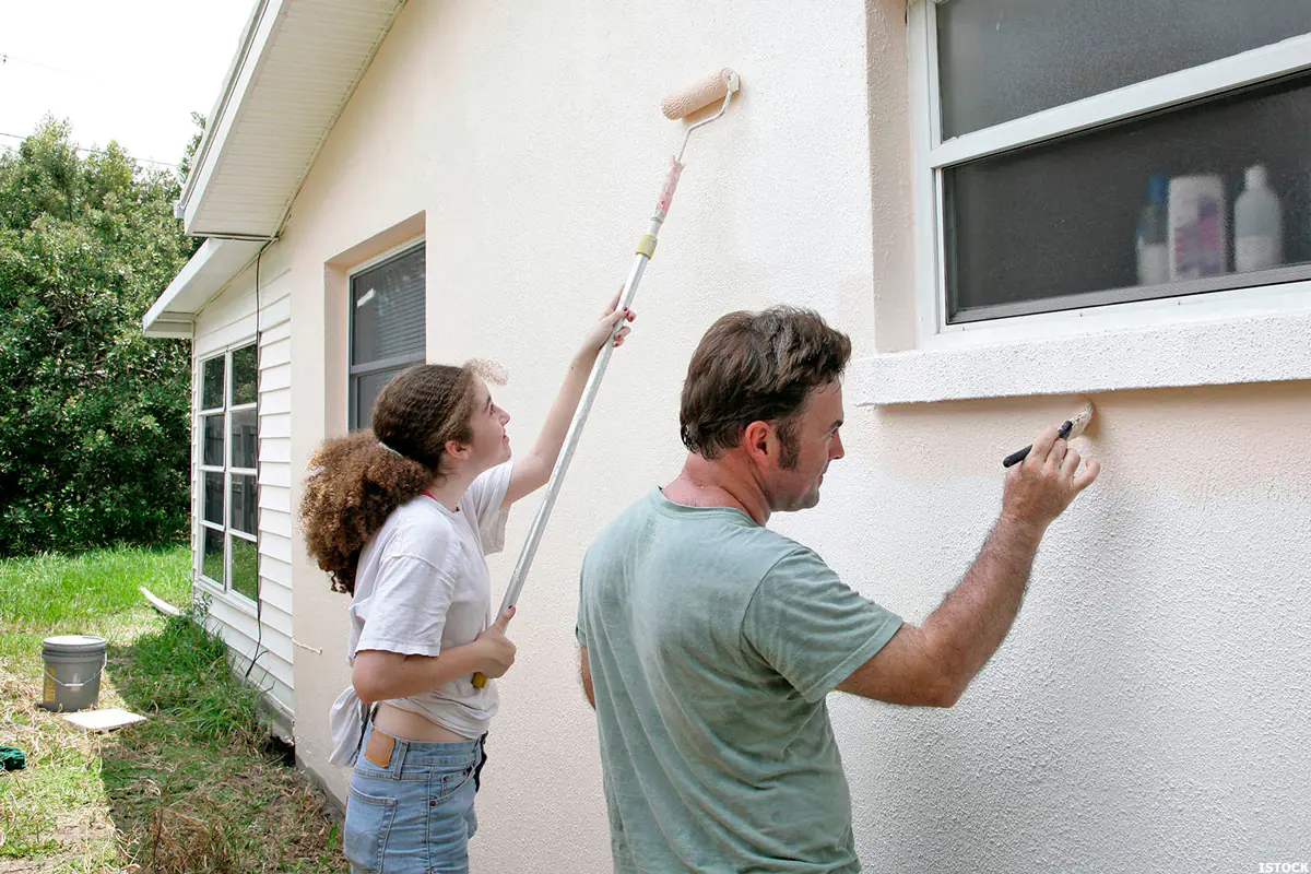 Не использовать ржавые инструменты и емкости. Работы на одной поверхности следует выполнять непрерывно, используя материал одинаковой консистенции. Перерыв в работе или завершение окрашивания рекомендуется производить в местах стыкования поверхностей (углы здания или помещения), архитектурных элементов фасада.