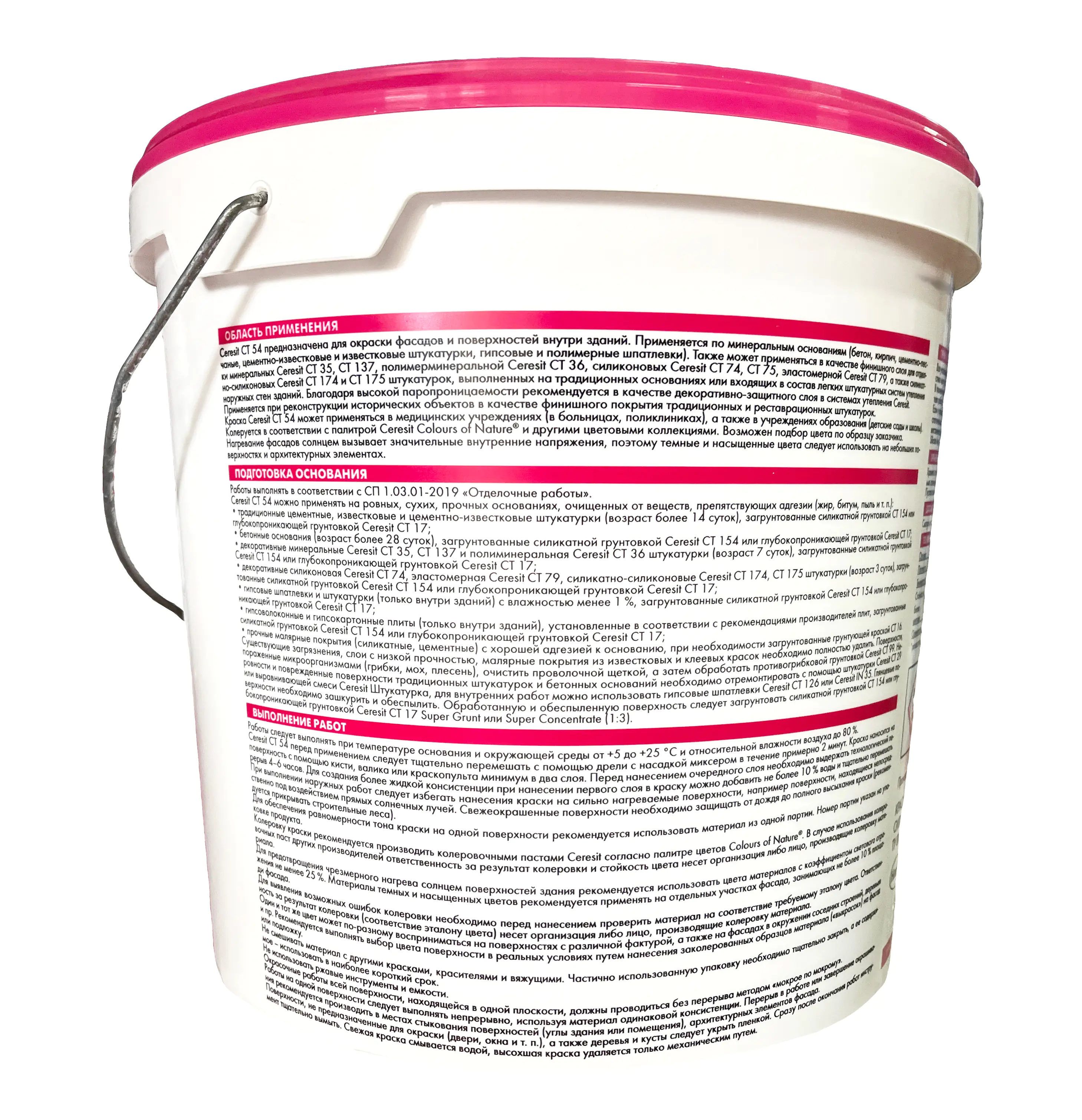 Работы следует выполнять при температуре основания и окружающей среды от +5 °С до +25 °С и относительной влажности воздуха до 80%. Акриловую краску Ceresit CT 42 перед применением следует тщательно перемешать. Краска наноситься на поверхность с помощью кисти, валика или краскопульта минимум в два слоя. Перед нанесением очередного слоя необходимо выдержать технологический перерыв 4-6 часов. Для создания более жидкой консистенции при нанесении первого слоя в краску можно добавить не более 5% воды и тщательно перемешать.