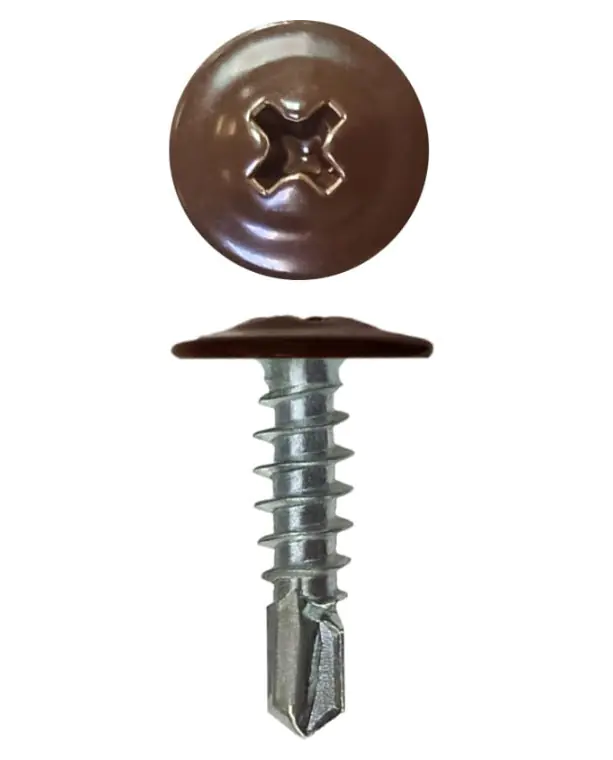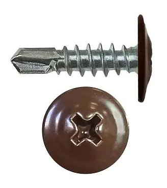 Саморез DAXMER Pro 4,2х16 RAL 8017 (коричневый шоколад) с прессшайбой со сверлом сделан из оцинкованного металла, имеет отличную способность просверливания и удачно подходит для монтажа. В упаковке 1000 штук.