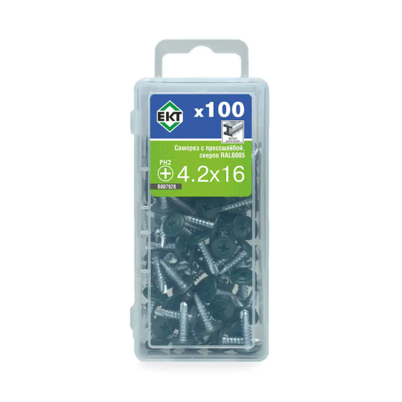 Саморез с прессшайбой ЕКТ 4,2x16 со сверлом, RAL 6005, 100 шт (B007928)