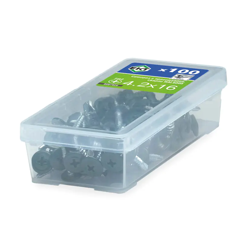 Саморез ЕКТ с п/ш, сверло предназначен для надежного крепления стальных и других листовых материалов к металлическим (до 2 мм) и деревянным конструкциям. Он обеспечивает прочное соединение и удобство монтажа. В упаковке 100 штук.