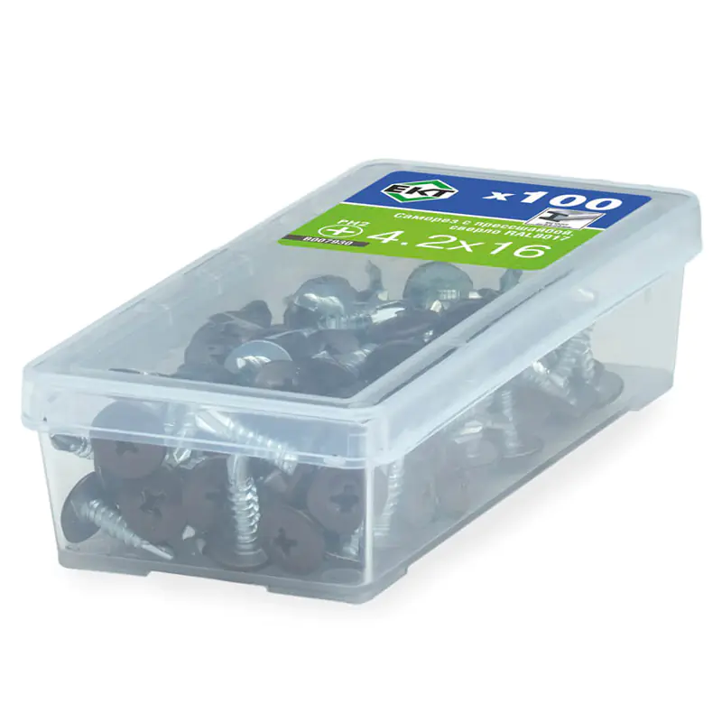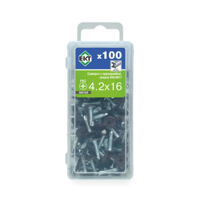 Саморез с прессшайбой ЕКТ 4,2x16 со сверлом, RAL 8017, 100 шт (B007930)