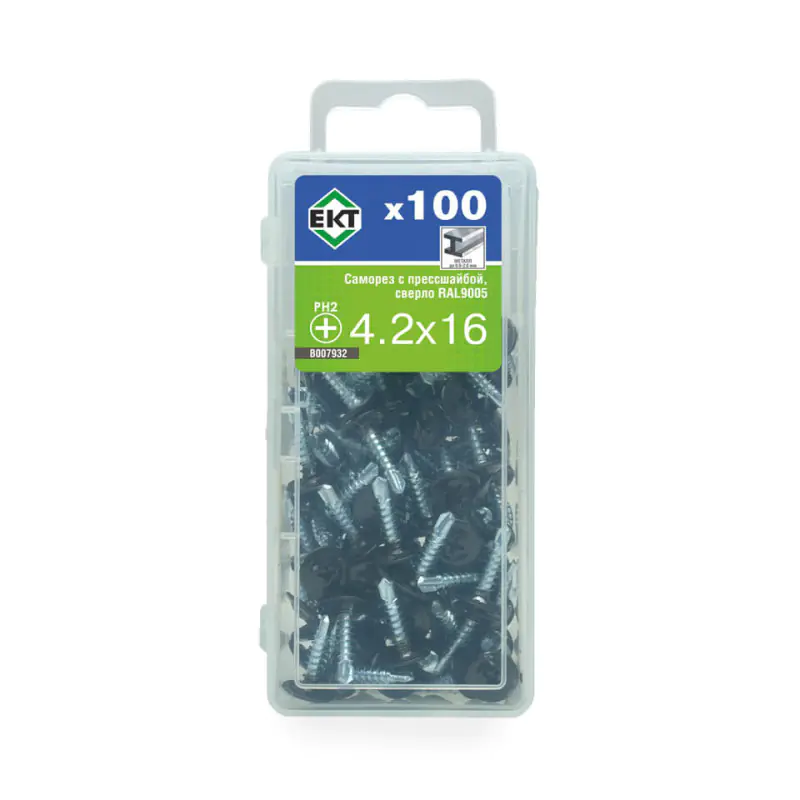 Саморез ЕКТ с п/ш, сверло предназначен для надежного крепления стальных и других листовых материалов к металлическим (до 2 мм) и деревянным конструкциям. Он обеспечивает прочное соединение и удобство монтажа. В упаковке 100 штук.
