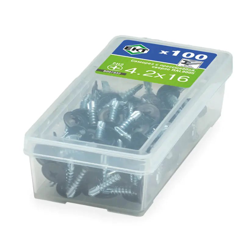 - В комплекте с саморезом идет прессшайба, которая обеспечивает эффективное прижимание листовых материалов и предотвращает их отслоение или движение.