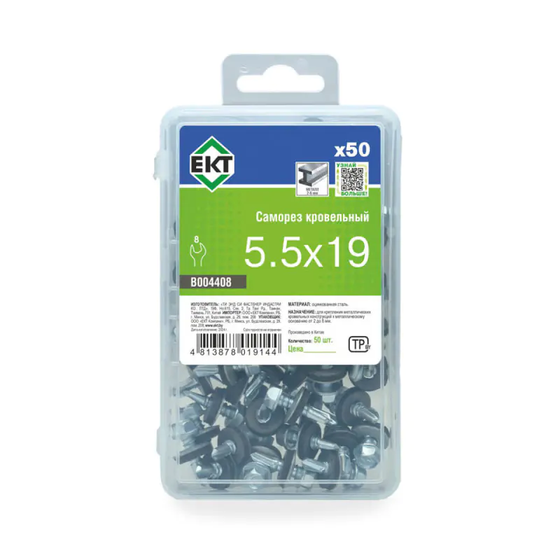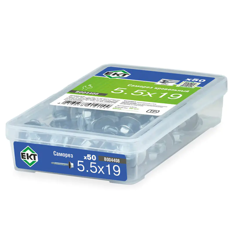 Кровельный саморез 5,5х19 мм оцинкованный с резиновой прокладкой со сверлом РТ3 предназначен для надежного крепления металлочерепицы и профнастила к деревянным подконструкциям. В упаковке 50 шт.