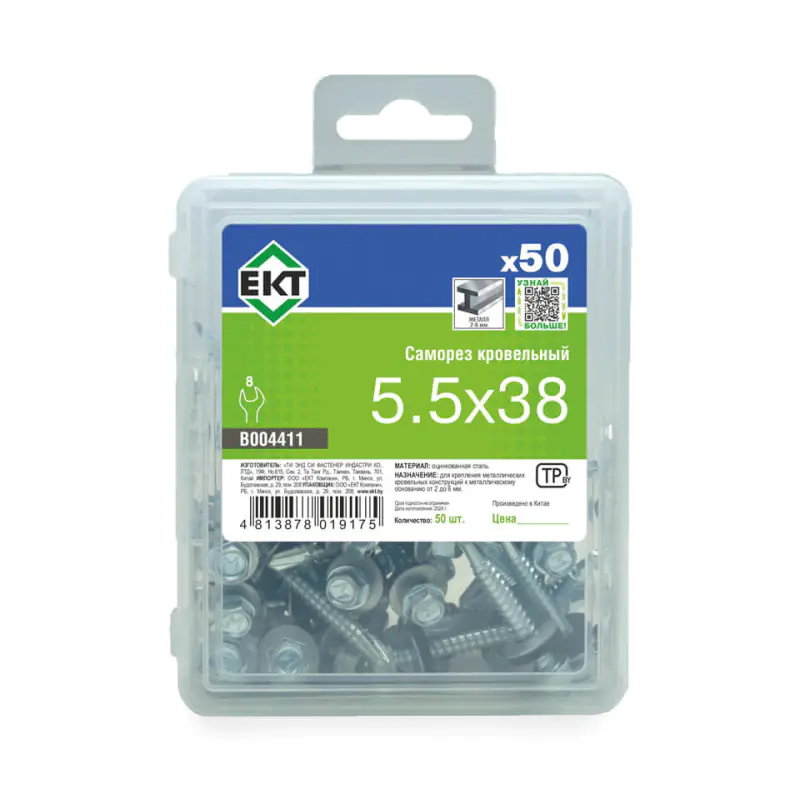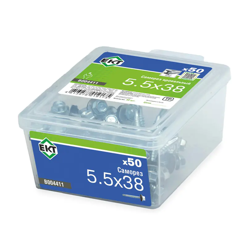 Кровельный саморез 5,5х38 мм оцинкованный с резиновой прокладкой со сверлом РТ1 предназначен для надежного крепления металлочерепицы и профнастила к деревянным подконструкциям. В упаковке 50 шт.