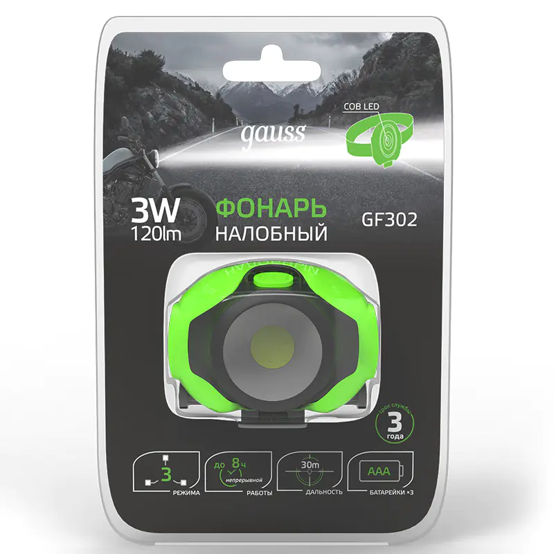 Фонарь налобный Gauss GFL302 – универсальная модель налобного фонаря. Лучший источник направленного света при необходимости свободных рук. Видимость в ночное время составляет до 30 м, эластичный регулируемый головной ремень плотно фиксирует прибор на голове. Все это позволяет использовать фонарь для применения в любых работах в темное время суток, в гараже, на рыбалке, в поисковых мероприятиях.