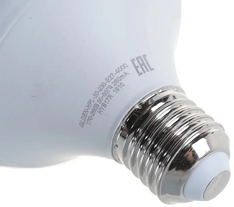 Лампа светодиодная высокомощная General Lighting холодного белого света. Мощность 30 Вт. Цоколь Е27. Температура свечения 4000 К. Срок службы 35000 ч.