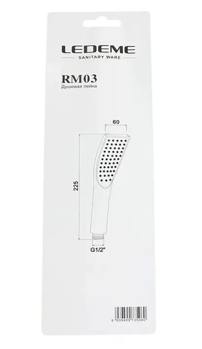 Ручная душевая лейка Ledeme RМ03 изготовлена из пластика. Цвет покрытия хром. 1 режим подачи воды. Диаметр подключения – G1/2.