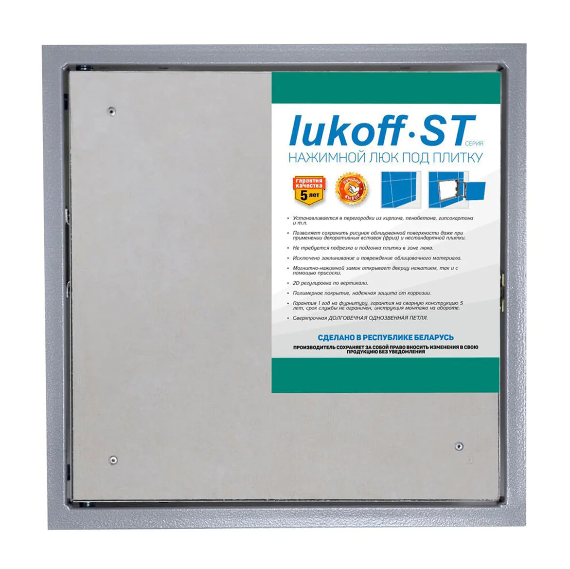 Люк под плитку с распашной дверцей Lukoff ST 50-50 Zn – классический ревизионный люк-невидимка с центрированной петлей, под облицовку керамической плиткой, мозаикой, а также искусственным и натуральным камнем. Его основная задача – скрыть доступ к счетчикам воды, вентилям, водопроводным трубам и бойлерам. Благодаря своей конструкции, установленный и облицованный плиткой люк абсолютно незаметен. В отличие от люков других производителей в модели ST используется центрированная петля, которая не требует постоянной регулировки и исключает провисание, а так же магнитно-нажимной замок с мощным выталкивающим механизмом, который исключает заклинивание (в отличии от производителей РФ в данной ценовой категории). Люк изготовлен из прочного стального профиля.