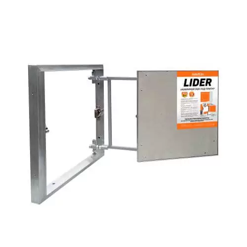 Алюминиевый невидимый люк Lider с двумя магнитно-нажимными замками для доступа к инженерным, вентиляционным, электрическим, сантехническим коммуникациям. Используется ревизионный люк в качестве декоративных экранов под ванную, для различных ниш.