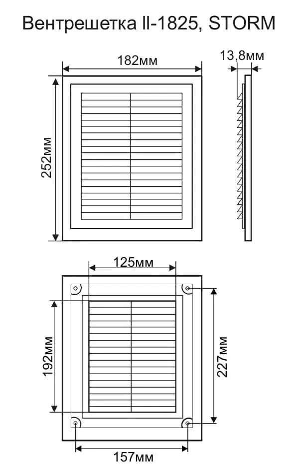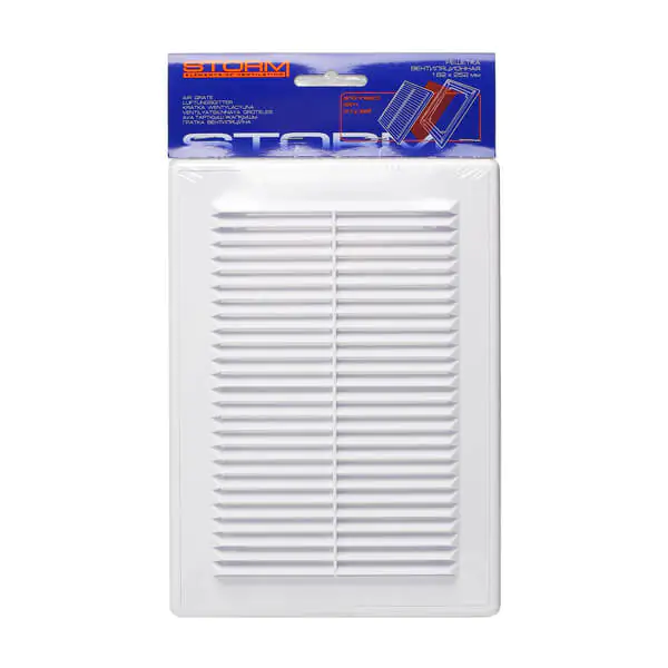 Двойная вентрешетка П STORM II-1825 используется для оформления вентиляционных отверстий, а также для регуляции воздухообмена в помещении. Изготовлена из пластика в форме рамы и зафиксированных под углом 45 градусов пластин. Сетка под пластинами защищает от попадания мусора. Подходит для вентиляционного отверстия размером до 125х192 мм. Размер под крепления составляет 157х227 мм. Общий размер решетки 182х252 мм.
