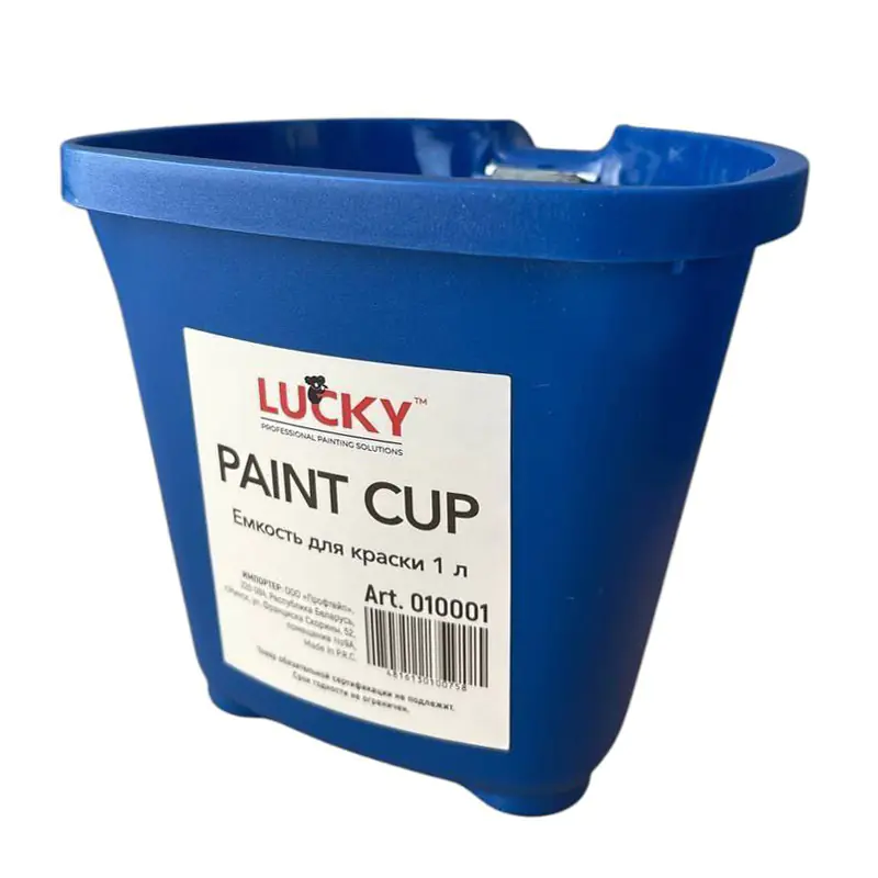 Емкость для краски LUCKY 1 л со встроенной скребковой поверхностью, магнитодержатель для малярных кистей и бюгелей. В комплекте нет сменных вкладышей.