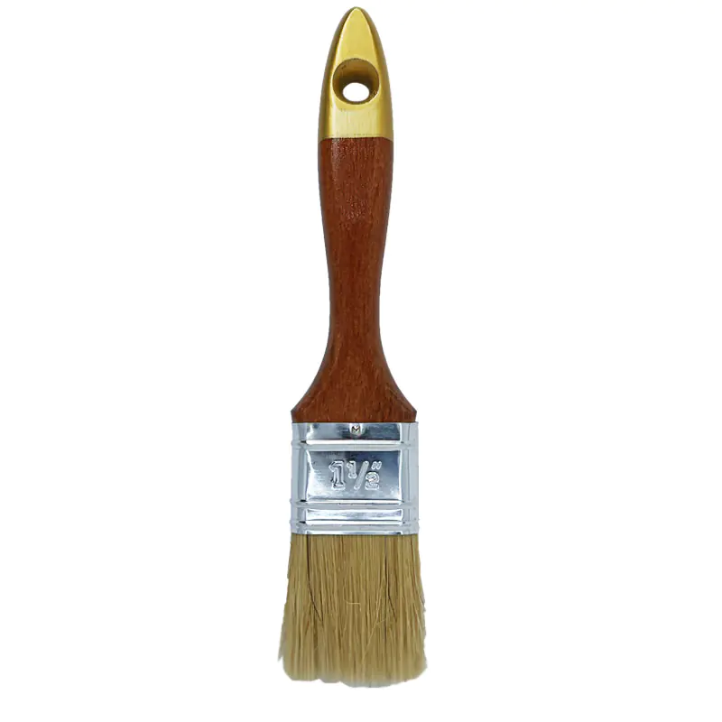 Плоская флейцевая кисть 38 мм типа "английская профи" сделана из натуральной щетины. Деревянная ручка покрыта лаком и укреплена оцинкованным бандажом. Предназначена для работы с масляными красками, лаками и эмульсиями. Длина щетины 45 мм.