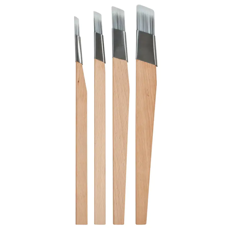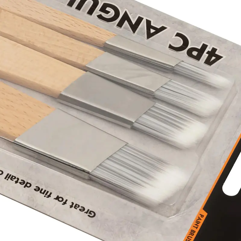 Набор филеночных кистей Rollingdog серии Design состоит из 4 кистей с синтетической нитью, срезанных под углом. Филеночные кисти применяют на небольших поверхностях для очерчивания линий, полос, рисования трафаретов и окраски труднодоступных мест. Малярные кисти с угловым срезом лучше всего подходят для обработки углов, изделий из дерева, лепнины или других поверхностей, требующих детального окрашивания или любой другой тонкой работы.