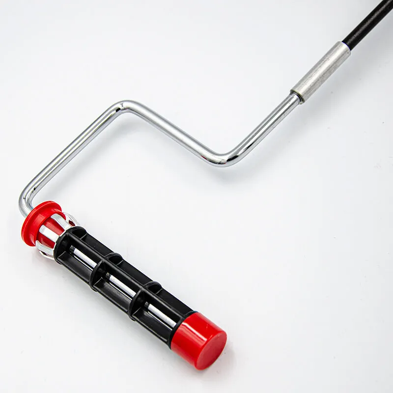 Бюгель Dolphin Flexi - эргономичная, запатентованная рукоятка. Изгибающаяся длинная рукоятка из стекловолокна позволяет прокрашивать труднодоступные места. Имеет нейлоновый и шарико-подшипниковый цилиндр с защелкой на валу, прочно закрепленный на хромированном профиле, что обеспечивает гладкое качение валика по окрашиваемой поверхности без заеданий и смазываний. Длина ролика 100 мм. Длина ручки 175 мм.