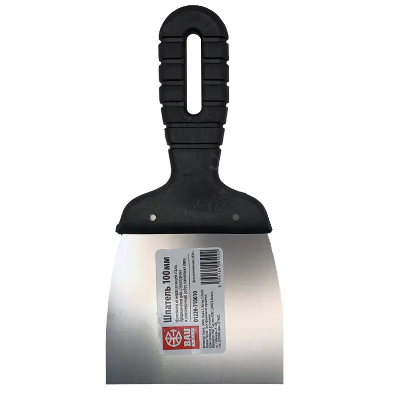 Шпатель строительный шириной 100 мм предназначен для устранения неровностей, шероховатостей и дефектов поверхностей, внутренней отделки, заделывания трещин, очистки поверхностей от старых обоев или краски, нанесения клея.