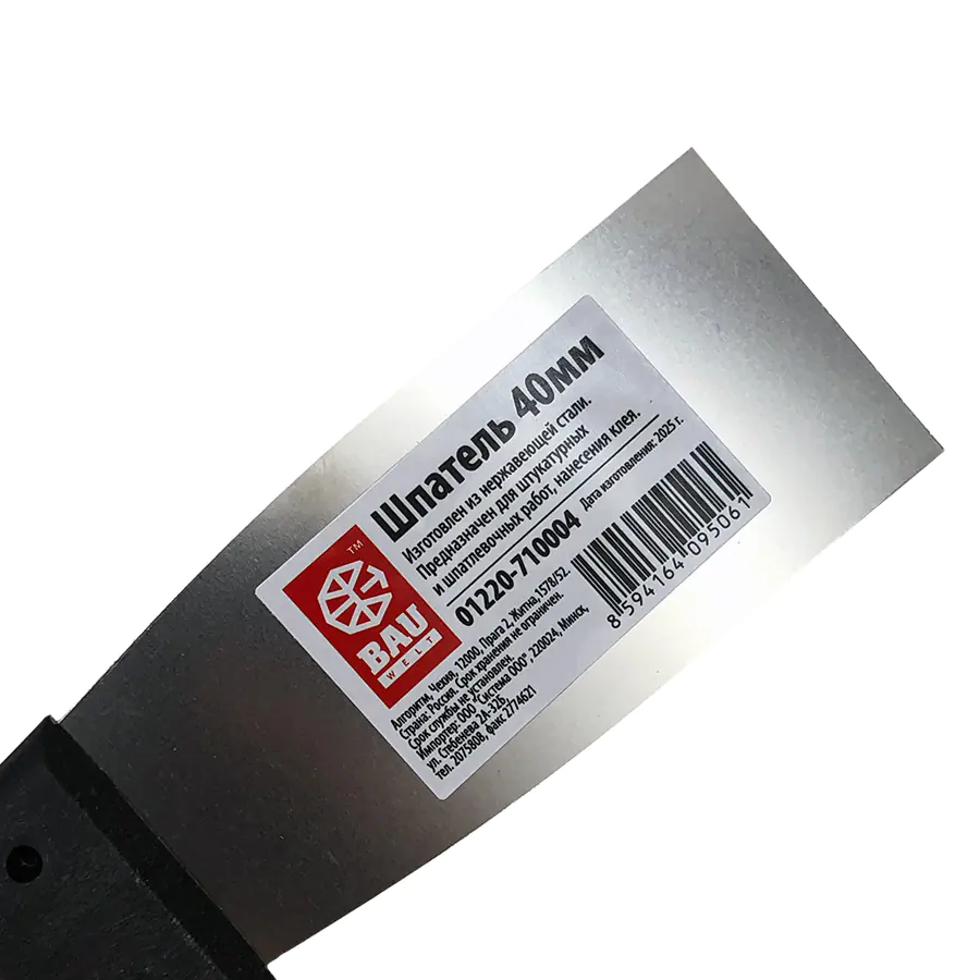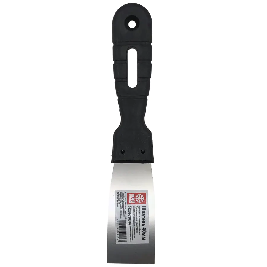 Шпатель строительный шириной 40 мм предназначен для устранения неровностей, шероховатостей и дефектов поверхностей, внутренней отделки, заделывания трещин, очистки поверхностей от старых обоев или краски, нанесения клея.