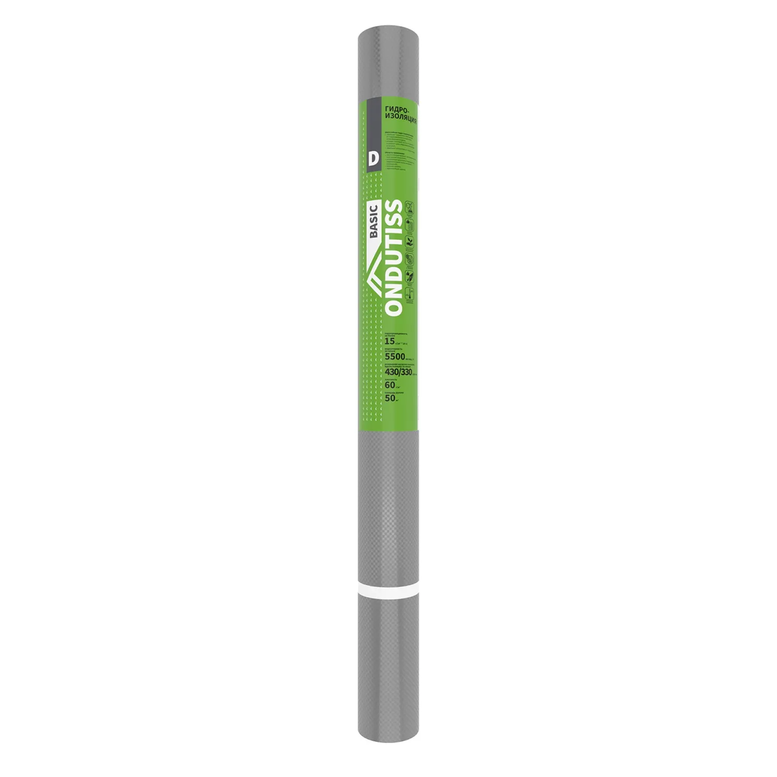 Ондутис Basic D – двухслойная гидро-пароизоляционная плёнка из серого полипропилена, ламинированного защитной плёнкой. Материал экологически безопасен, обладает высокой разрывной прочностью и не подвержен бактериальному разложению. В рулоне 50 м. кв.
