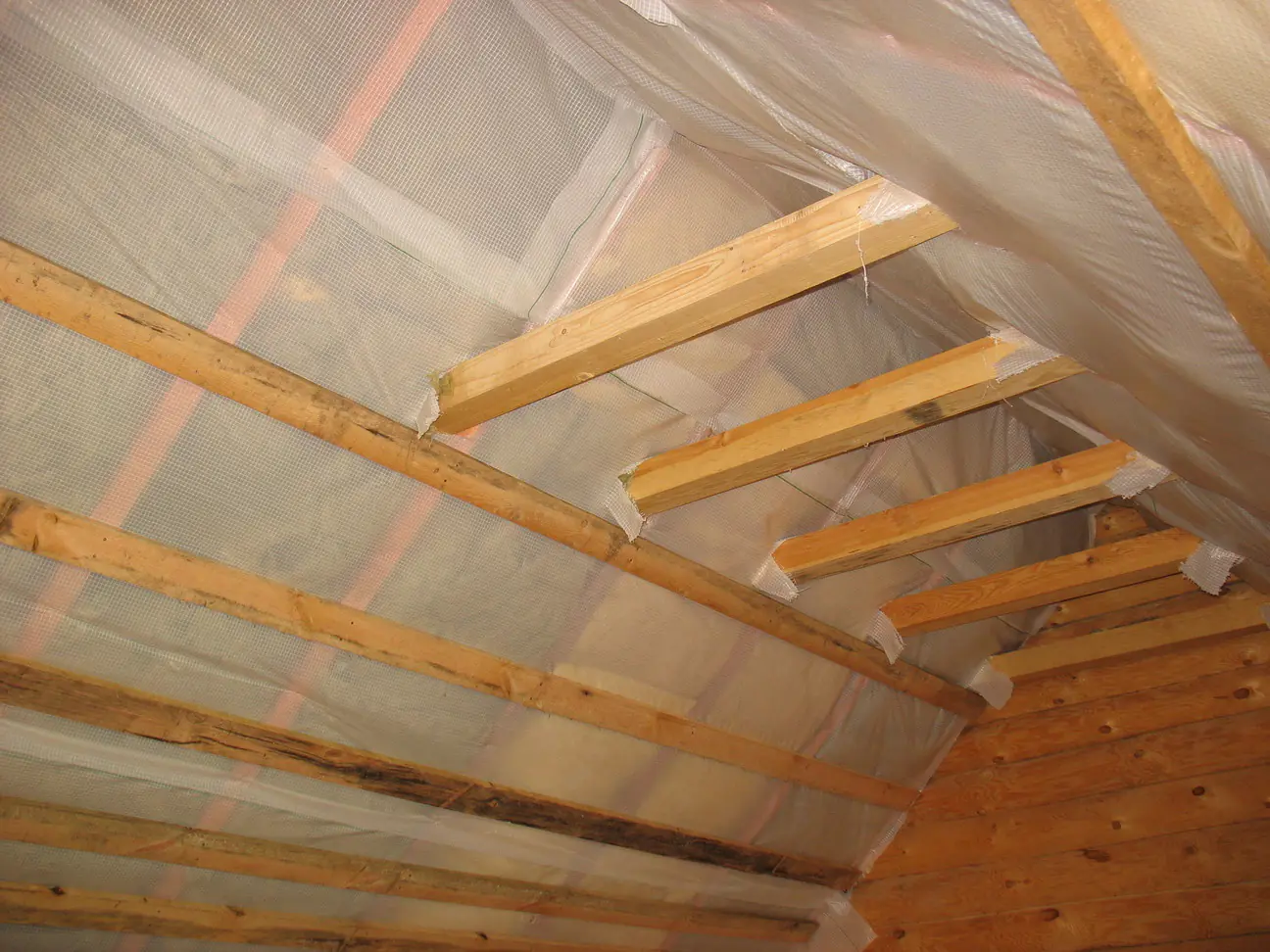 Пароизоляционная мембрана используется как изолирующий материал в межэтажных перекрытиях с применением утеплителей всех типов. ECOTEX STANDART B55 укладывается между отделочным материалом потолка и черновым полом (гладкой стороной к полу) и по потолочным лагам над утеплителем (шероховатой стороной к утеплителю). Рекомендуется устанавливать вентиляционный зазор 4-5 см между утеплителем и верхним слоем пароизоляции, а также между чистовым полом и материалом.