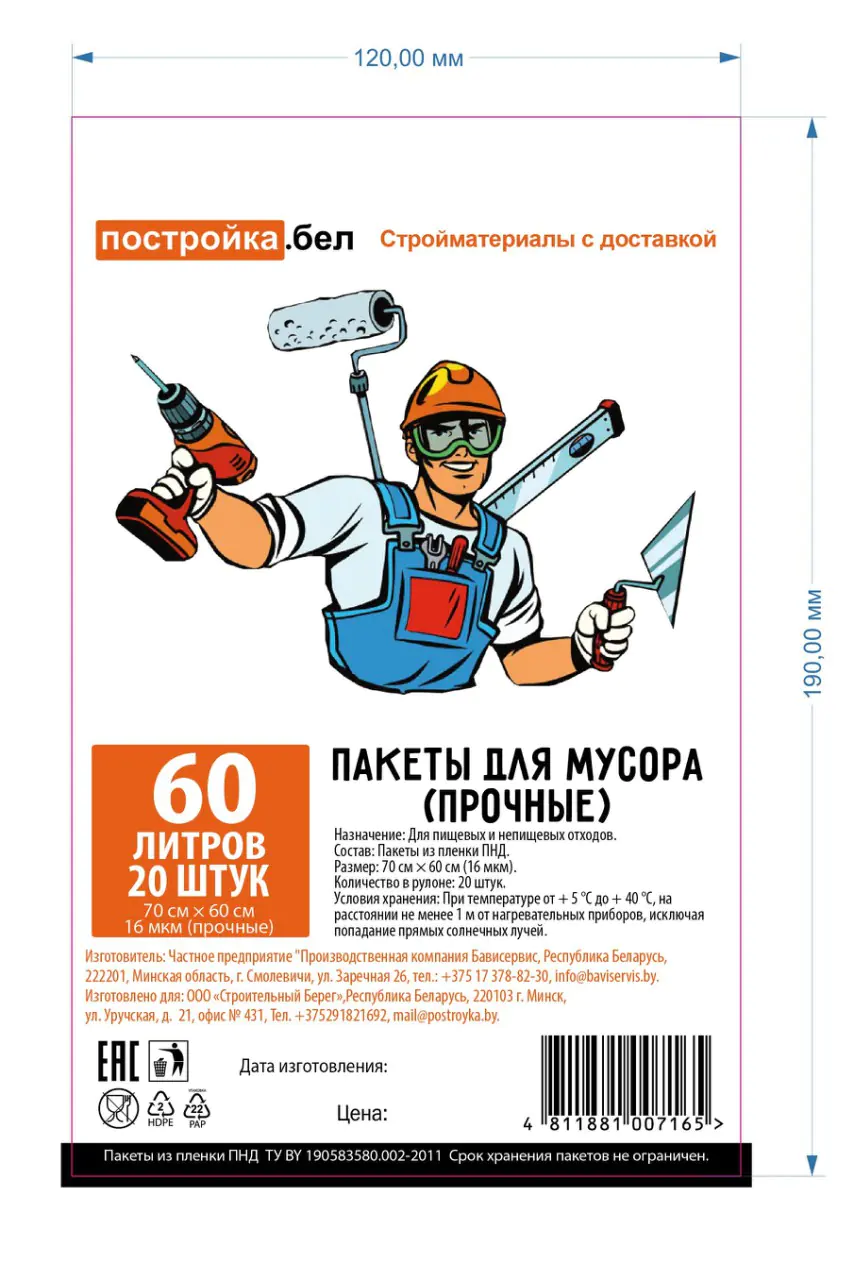 - Состав: пленка ПНД (полиэтилен низкого давления).