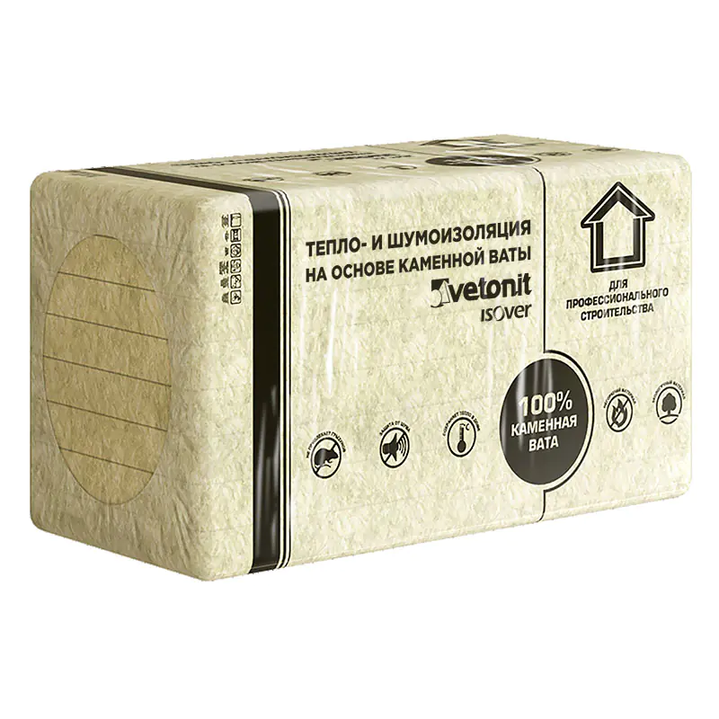 Базальтовый утеплитель (каменная вата) Vetonit (Isover) Фасад Мастер 1000х600х100 мм 1,8 м2 (3 шт в упаковке) - жесткие плиты из минеральной ваты на основе каменного волокна, относится к теплоизоляции для штукатурных фасадов. Характеристики продукта обеспечивают высокую прочность плит в сочетании с максимальным уровнем теплозащиты для надежного утепления стен дома. Плотностью 105-115 кг/м3.