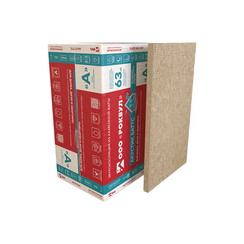 - Плиты Акустик Батт предназначены для борьбы с воздушным шумом. Обладают высоким коэффициентом звукопоглощения в диапазоне средних и высоких частот. Плиты Акустик Батт обеспечивают снижение воздушного шума от 43 дБ до 63 дБ в зависимости от типа сооружаемой конструкции (одинарный, двойной и т.д. каркас для ГКЛ).