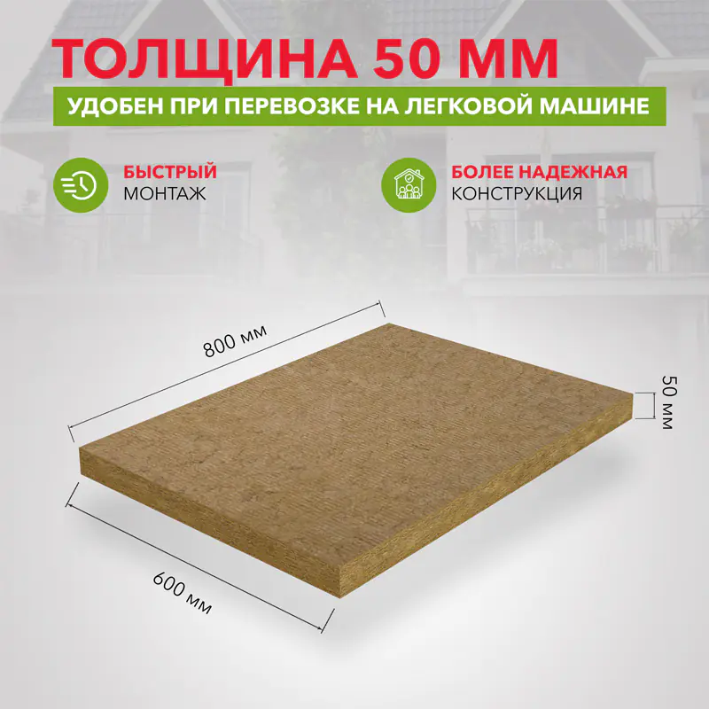 Минеральная вата Rockwool Лайт Баттс Скандик 50 мм (в пачке 5,76 м²)
