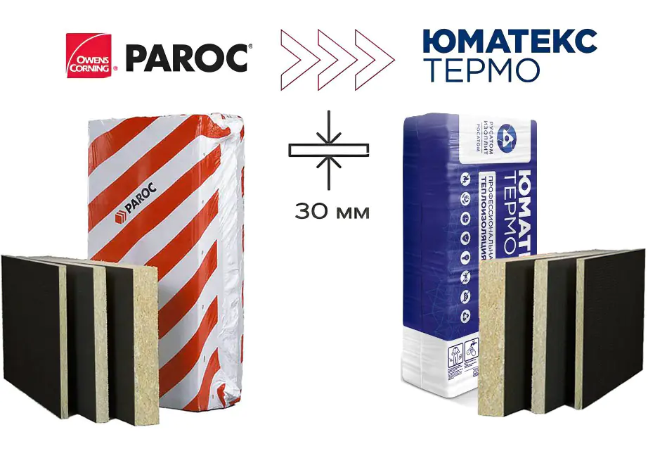 Утеплитель плита UMATEX Termo (Paroc) WAS 35tb 1200х600х50 мм – это негорючая каменная вата, применяемая для изоляции вентилируемых фасадов в процессе реконструкции старых и строительства новых зданий. Она гибкая и упругая, что позволяет обеспечить герметичное, плотное примыкание утеплителя к стене. Может использоваться в качестве внешнего слоя двухслойной системы в сочетании со вторым теплоизоляционным слоем. Соединив плиты вразбежку, вы можете создать двухслойную конструкцию фасада с улучшенными теплоизоляционными характеристиками. Фасадная плита имеет кашировку черным стеклохолстом, что позволяет, с одной стороны, защитить теплоизоляция от инверсии волокна, а, с другой стороны, применить ее в конструкции фасада из стеклянных панелей. Цена за упаковку.