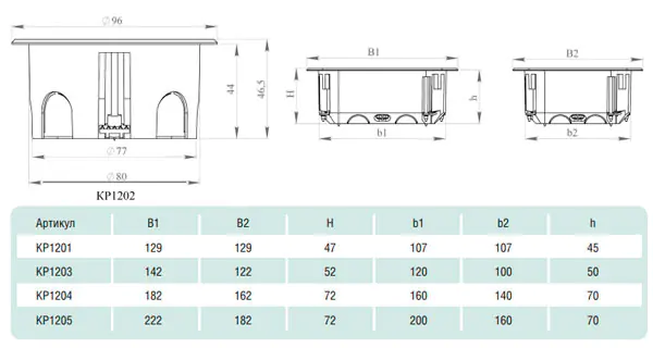 Внутри коробок на дне находятся направляющие, позволяющие при помощи самонарезающих винтов устанавливать клемники, рейки, платы и другие изделия. Все коробки, имеющие металлические лапки, комплектуются трехзаходными винтами, позволяя сократить время монтажа в стену.