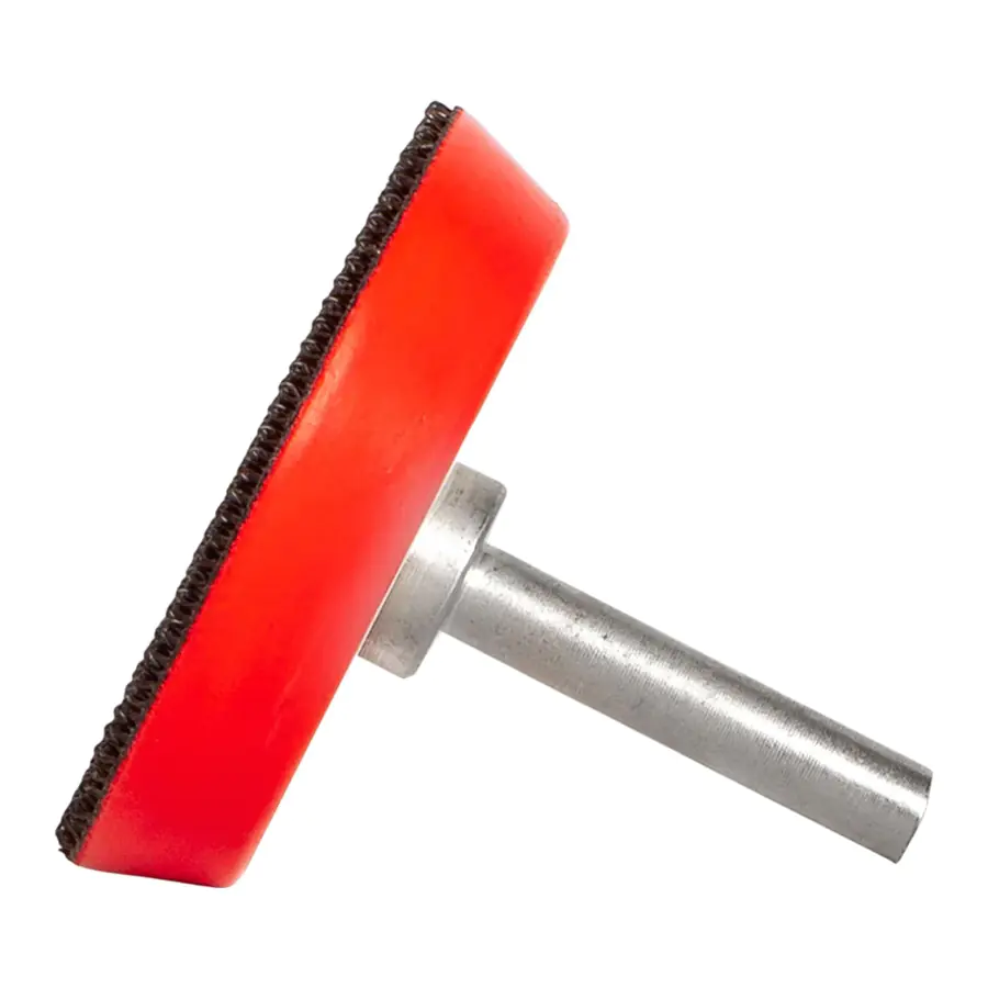 - Тарелка опорная со съемным хвостовиком: крепление абразивных дисков на липучке, хвостовик 3,2 мм, посадка M6.