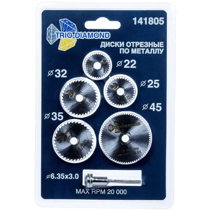 Набор пильных дисков по металлу HSS 22/25/32/35/45 мм Trio-diamond 141805 для гравировальной машинки. Предназначены для работы с металлом, пластиком, древесиной.