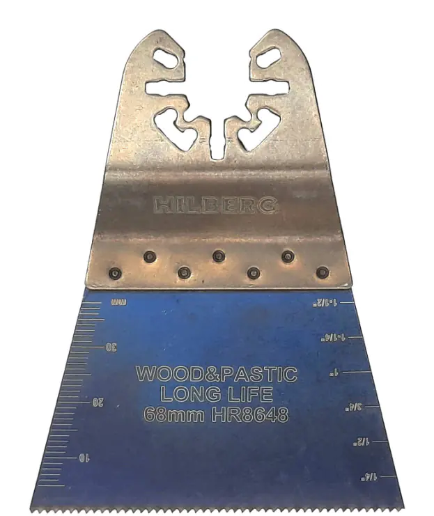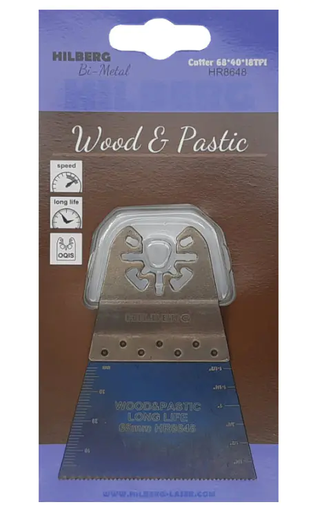 Полотно пильное погружное по древесине и пластику Hilberg HR8648 изготовлено из биметалла (Bi-M) и используется в многофункциональном инструменте (реноваторе). С его помощью осуществляют рез заподлицо в труднодоступных местах. Применяется для точных работ по мягкой, твердой, клееной, ламинированной древесине, пластику. Шаг зубьев - 18 TPI.