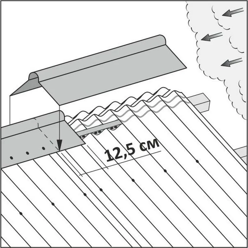 В зависимости от угла наклона ската кровли предусматривается два вида кровельной обрешетки: разреженная (из бруска сечением минимум 40х60 мм.) и сплошная (из плиты OSB или фанеры ФСФ). При угле наклона крыши от 20º делается обрешетка с интервалом 610 мм по осям. Концевой нахлест: 120 мм, боковой нахлест: 1 волна. Полезная площадь листа в этом случае составит: 1,56 м2. При угле наклона крыши от 15º до 20º делается обрешетка с интервалом 450 мм по осям. Концевой нахлест: 200 мм, боковой нахлест: 1 волна. Полезная площадь листа в этом случае составит: 1,5 м2. При угле наклона крыши от 5º до 15º требуется монтаж сплошной обрешетки. Концевой нахлест: 300 мм, боковой нахлест: 2 волны. Полезная площадь листа в этом случае составит: 1,25 м.кв.