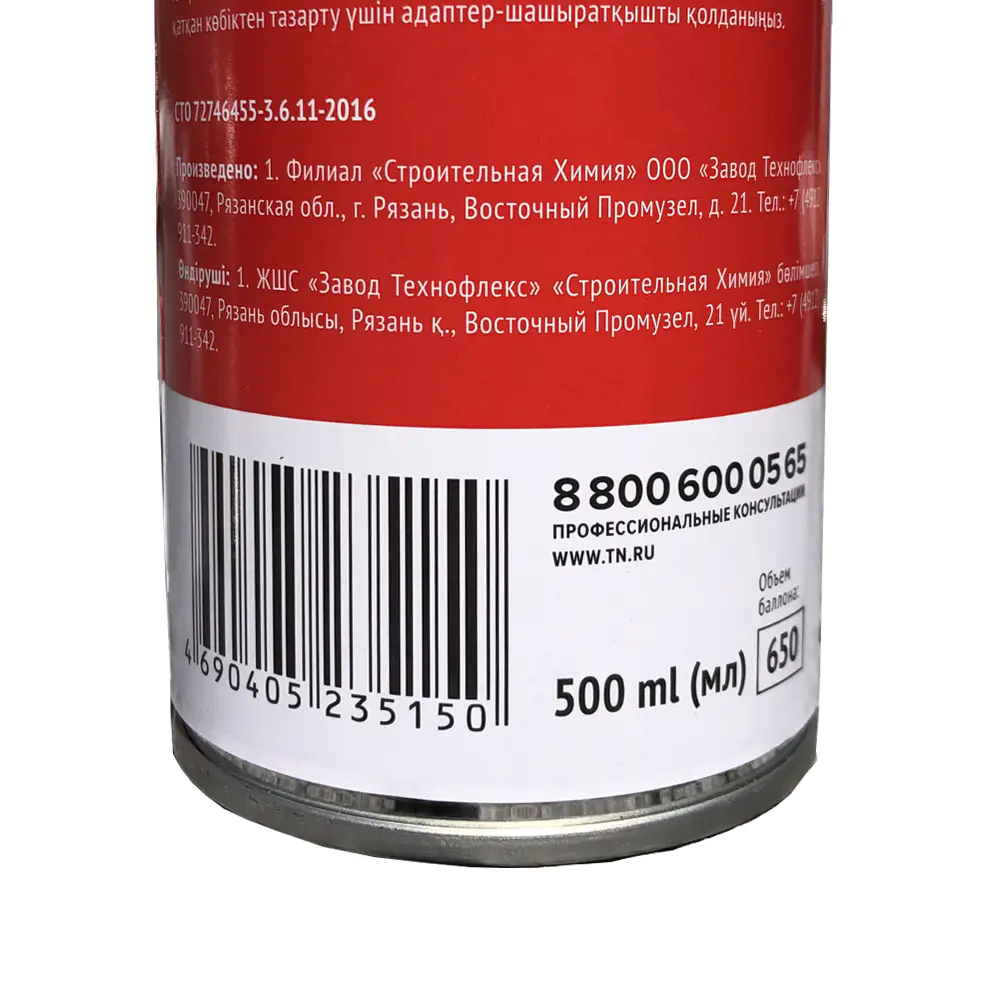 Для промывания пистолета сразу после опустошения баллона монтажной пены необходимо привинтить баллон с очистителем монтажной пены к пистолету и несколько раз выпустить струю очищающей жидкости. Для очистки одежды от незатвердевшей пены используется адаптер-распылитель. Применяется при температуре от +5°С до +30°С.