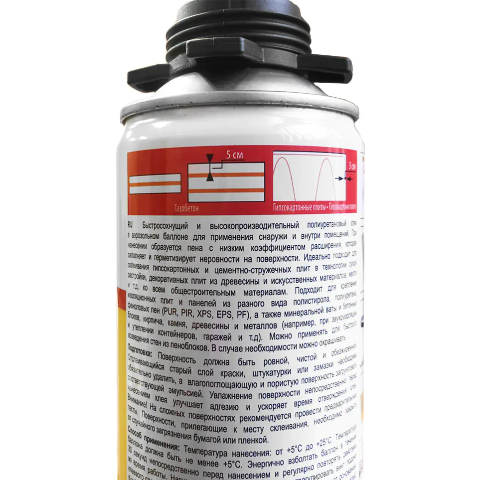 Клей-пена Soudal Soudabond Easy – быстросохнущий полиуретановый клей в аэрозоле с высокой производительностью для крепления гипсокартонных плит и панелей из пенопласта внутри и снаружи помещений.