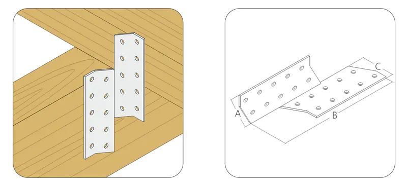 Держатель балки DB L 40х190 мм левый используется для параллельного крепления балок и для крепления крест-накрест при строительстве деревянных конструкций и домов. Диаметр отверстий 5 мм. Толщина 2 мм.