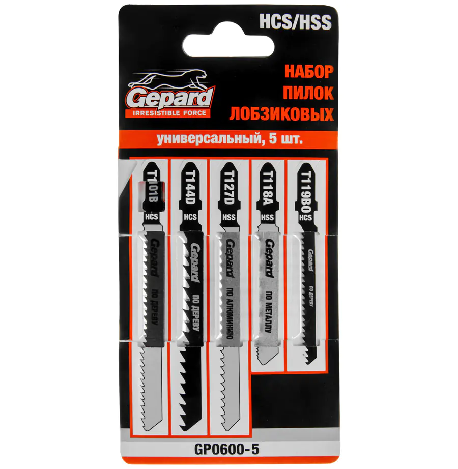 Набор пилок для лобзика 5 шт универсальный GEPARD используется для обработки заготовок из металла, ДСП и древесины. Пилки изготовлены из высококачественной быстрорежущей стали и имеют универсальный Т-образный хвостовик. Набор включает в себя пилки типов T101B, T144D, T127D, T118A, T119BO для чистого, фигурного и быстрого реза. Являются сменным пильным элементом для электролобзиков.
