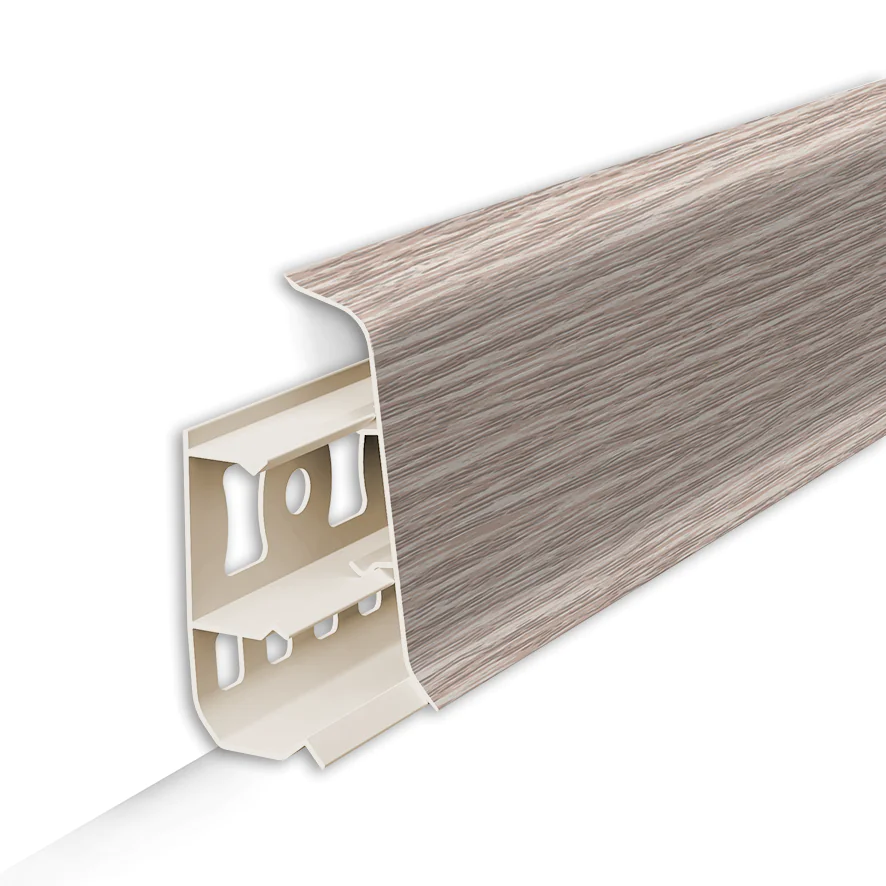 Плинтус напольный Идеал Деконика это продуманный современный дизайн с задним монтажным профилем и цельной лицевой частью. Легкий монтаж за счет формы и перфорации основы плинтуса. Общая коллекция реалистичных декоров плинтусов Идеал с защитным покрытием, продлевающим срок службы. Высота плинтуса по стене - 55 мм.