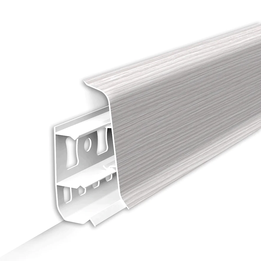 Плинтус напольный Идеал Деконика это продуманный современный дизайн с задним монтажным профилем и цельной лицевой частью. Легкий монтаж за счет формы и перфорации основы плинтуса. Общая коллекция реалистичных декоров плинтусов Идеал с защитным покрытием, продлевающим срок службы. Высота плинтуса по стене - 55 мм.