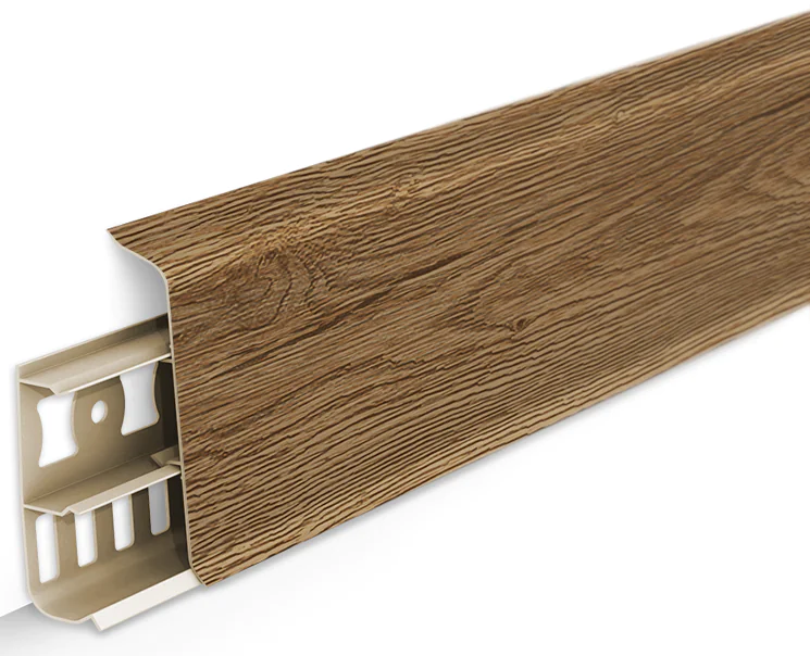 Плинтус напольный Идеал Деконика это продуманный современный дизайн с задним монтажным профилем и цельной лицевой частью. Легкий монтаж за счет формы и перфорации основы плинтуса. Общая коллекция реалистичных декоров плинтусов Идеал с защитным покрытием, продлевающим срок службы.