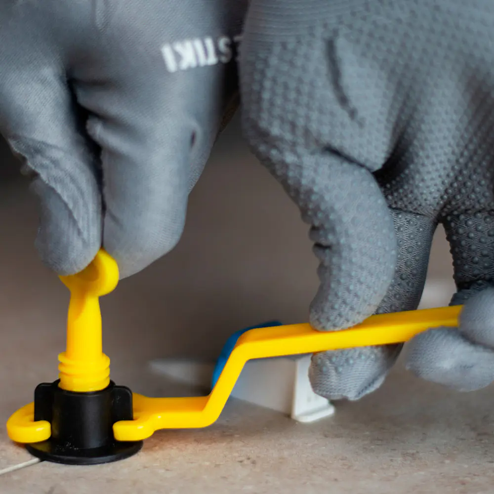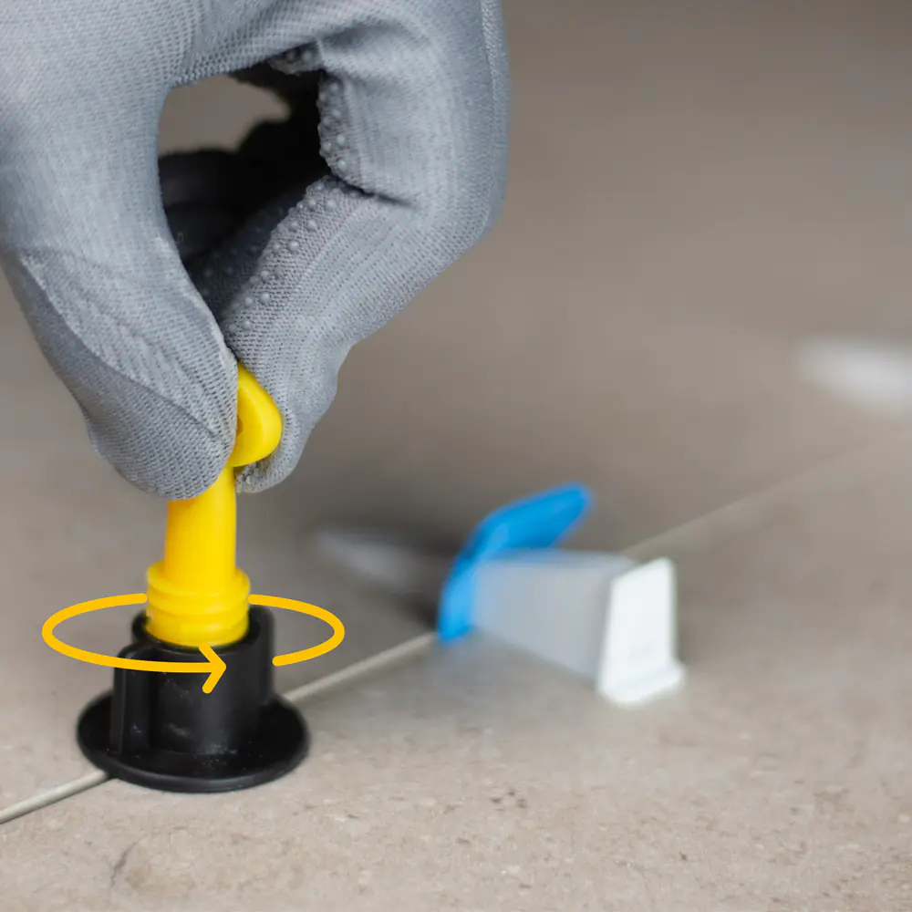 - Плитка уже уложена, но требуется дозатяжка, так как установленных зажимов оказалось недостаточно из-за неровности плиты.