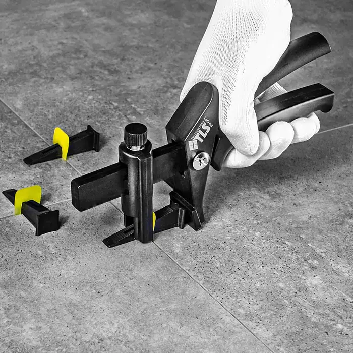 При укладке плитки с помощью специальных щипцов (инструмента) для СВП «TLS-PROFI» удобство затягивания системы и непревзойденное качество выравнивания плитки с одинаковым усилием затягивания.