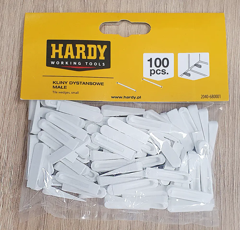 Клинья для укладки плитки малые Hardy 28х8х5 мм (2040-680001) используются с целью выдерживания точного межплиточного расстояния, а также для выравнивания плитки относительно поверхности. В упаковке: 100 шт. Цвет: белый. Толщина шва: до 4 мм