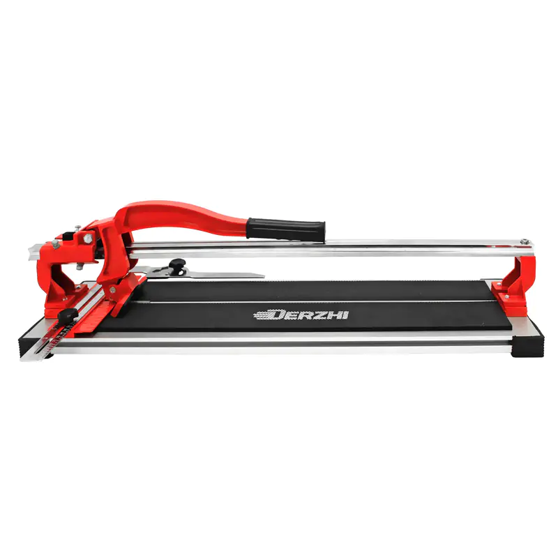 Плиткорез ручной рельсовый 900 мм, 6 подшипников, DERZHI (187691) прекрасно походит для выполнения кафельных работ. Инструмент ровно и точно разрезает напольную и настенную керамическую плитку длиной до 90 см и толщиной до 16 мм. Металлический угольник служит для регулировки размера и надежной фиксации заготовки.